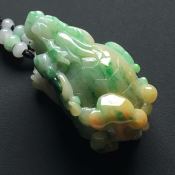 巧雕黄加绿 龙龟翡翠吊坠 尺寸:61-31-28.6毫米