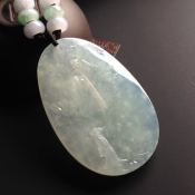 冰种晴水悠然自得 翡翠吊坠 尺寸52-34-7.5毫米
