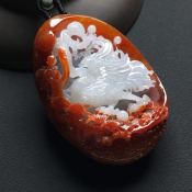 巧雕红翡花开富贵翡翠吊坠 尺寸49-30-14毫米