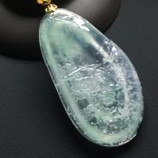 冰种晴水翡翠吊坠 尺寸:58-40.8-6.8毫米