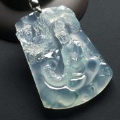 冰种飘花观音翡翠吊坠 尺寸:61-44-7毫米