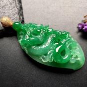 冰种带色 龙行天下翡翠吊坠 尺寸: 58-29-13mm