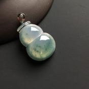 冰种飘花 葫芦翡翠吊坠 白金扣 尺寸25-19-7.5毫米