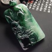 糯冰种绿底大好河山 翡翠吊坠 尺寸72-42-9毫米