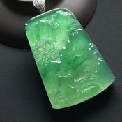 冰糯种满绿悟道牌 翡翠吊坠 尺寸63*37*4.4