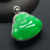 冰种阳绿翡翠吊坠 尺寸:34.5-31.5-8.8*裸石24-29-4毫米