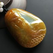 黄翡关公翡翠吊坠 尺寸62-46-14毫米