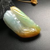 黄加绿孔明诸葛亮 翡翠吊坠 尺寸46-25-11毫米