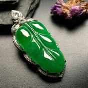 满色叶子 翡翠挂件 尺寸:整43-19-8mm 裸30-16-4mm