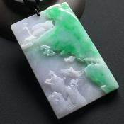 冰种飘花大好河山 翡翠吊坠 尺寸:61-37-6.2毫米
