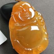 冰种黄翡弥勒佛翡翠吊坠 18K金镶嵌钻石