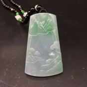 老坑料高冰种飘花山水牌翡翠吊坠