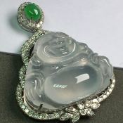 高冰弥勒佛 翡翠吊坠 水润冰透 种水足