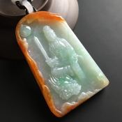 双彩文殊菩萨 翡翠挂件 尺寸70-43-7毫米