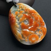 巧雕红翡鸟语花香翡翠吊坠 尺寸:61-45-11.2毫米