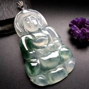 冰种飘绿翡翠观音吊坠 尺寸: 50-30-7mm