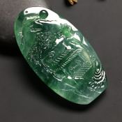 冰种翠绿深山访友 翡翠吊坠 尺寸60-32-7.5毫米
