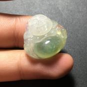冰糯种飘花佛公 佛翡翠吊坠 白金扣 尺寸33-40-7毫米