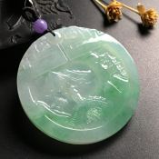 糯冰种晴水带色游山玩水吊坠 尺寸54-6毫米