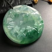 冰阳绿山水牌 翡翠吊坠 尺寸:43.1*25.2*9.2*m