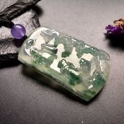 冰花淡泊人生翡翠吊坠 尺寸: 51-32-8mm