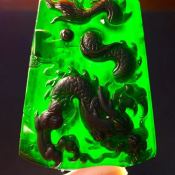 冰种墨翠龙牌挂件 尺寸50.7*35.7*7