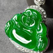 冰飘阳绿佛公 翡翠吊坠 尺寸37.7*38*10.3