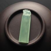 冰种晴水 缅甸天然貔貅翡翠印章 尺寸36-10-5毫米