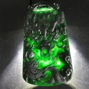 冰种墨翠 龙牌翡翠吊坠
