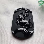 冰种墨翠金鼠运财吊坠 尺寸41.1-29-5.7
