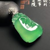 冰种阳绿翡翠葫芦吊坠 完美种水超好玉质细腻 .