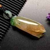糯冰种黄加绿悠然自得 翡翠吊坠 尺寸55-36-5.5毫米