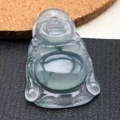 冰种飘花带彩佛公翡翠吊坠 尺寸:36.1*23.2*5.4