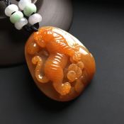 冰种带色悠然自得翡翠吊坠 尺寸:54-38-6.5毫米