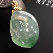 冰种飘绿翡翠吊坠 弥勒佛翡翠吊坠