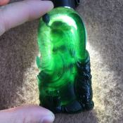 墨翠关公翡翠吊坠 非常大件正装 88.6*47*10.3