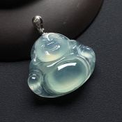 冰种飘花笑佛 翡翠吊坠 裸石尺寸: 24-24-6mm