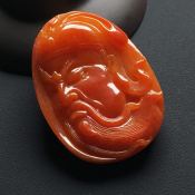 巧雕红翡忠义关公 翡翠吊坠 尺寸:57-40-10.9毫米