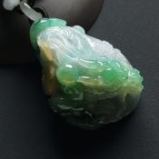 巧雕黄加绿 龙行天下翡翠吊坠 尺寸:48-35-23.7毫米