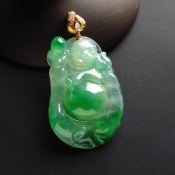 冰种飘阳绿大肚弥勒佛 翡翠吊坠 裸石尺寸40-26-9毫米
