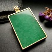 糯种满色 无事牌翡翠吊坠 尺寸: 整40-30-5mm