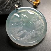 冰种晴底大好河山 翡翠吊坠 尺寸52-5毫米