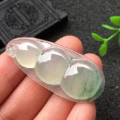 冰飘花福豆 翡翠挂件 种老冰透 飘花灵动