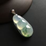 冰种飘花福豆 翡翠挂件 尺寸55-19-7毫米