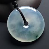 冰晴飘花平安扣 翡翠挂件 底色清雅 晶莹细腻