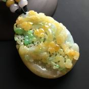 巧雕黄加绿喜上眉梢 翡翠吊坠 尺寸54-40-16毫米