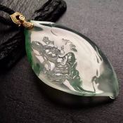冰糯种飘绿翡翠吊坠 尺寸: 58-37-7mm