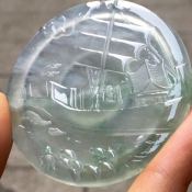 老坑料高冰种晴底翡翠挂件 冰透完美起光