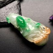 巧雕带色喜上眉梢 翡翠吊坠 尺寸65-41-12毫米