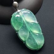 冰帝王绿叶子 翡翠挂件 裸石尺寸34.3*15.3*4